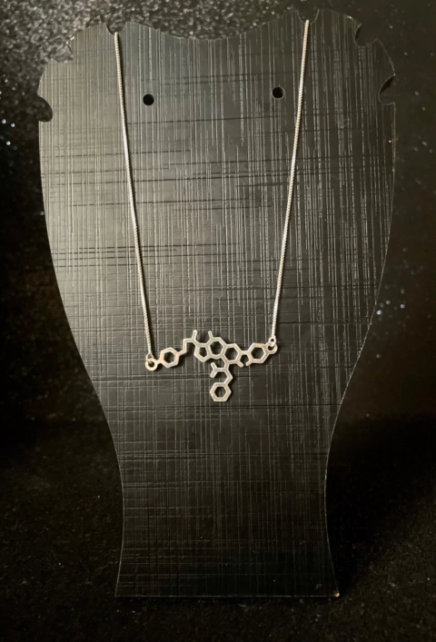 As endorfinas são hormônios liberados pelo cérebro em resposta a certos estímulos, como o exercício físico, a alimentação saudável, o sexo, o riso e outras atividades prazerosas. Elas ajudam a aliviar a dor, reduzir o estresse e melhorar o humor. Nossa molécula de endorfina possui anéis aromáticos, disposto de maneira irregular mas que confere um belo design. Confeccionada em prata 950, 1 ano de garantia. Acompanha embalagem de veludo, certificado de garantia e cuidados com a peça.